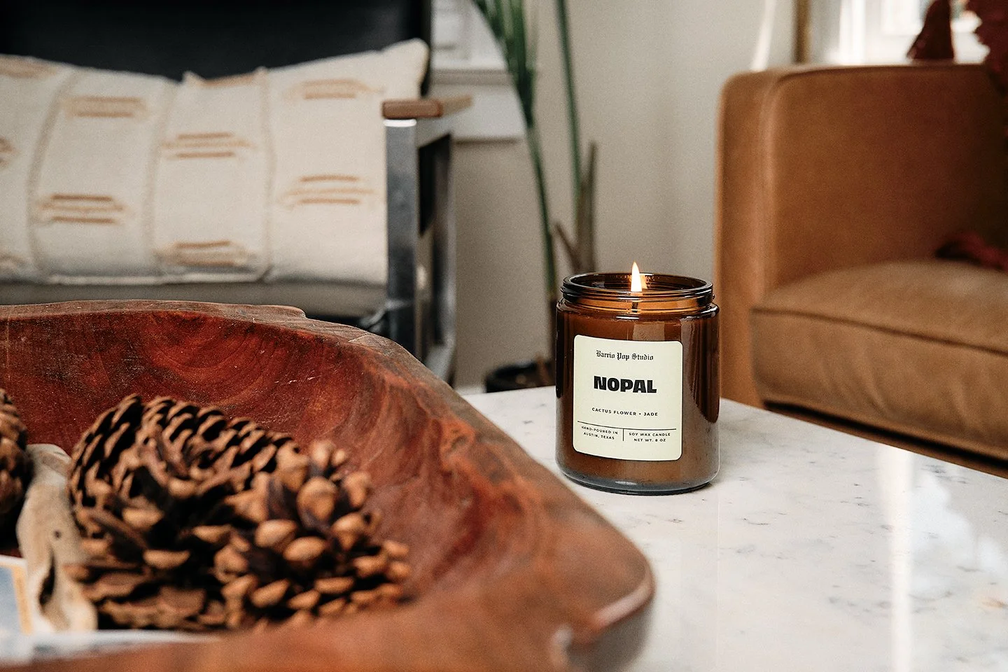 Hand-poured, small-batch candles crafted with original scents, earth-driven botanicals, and vessels inspired by our cultural archives.